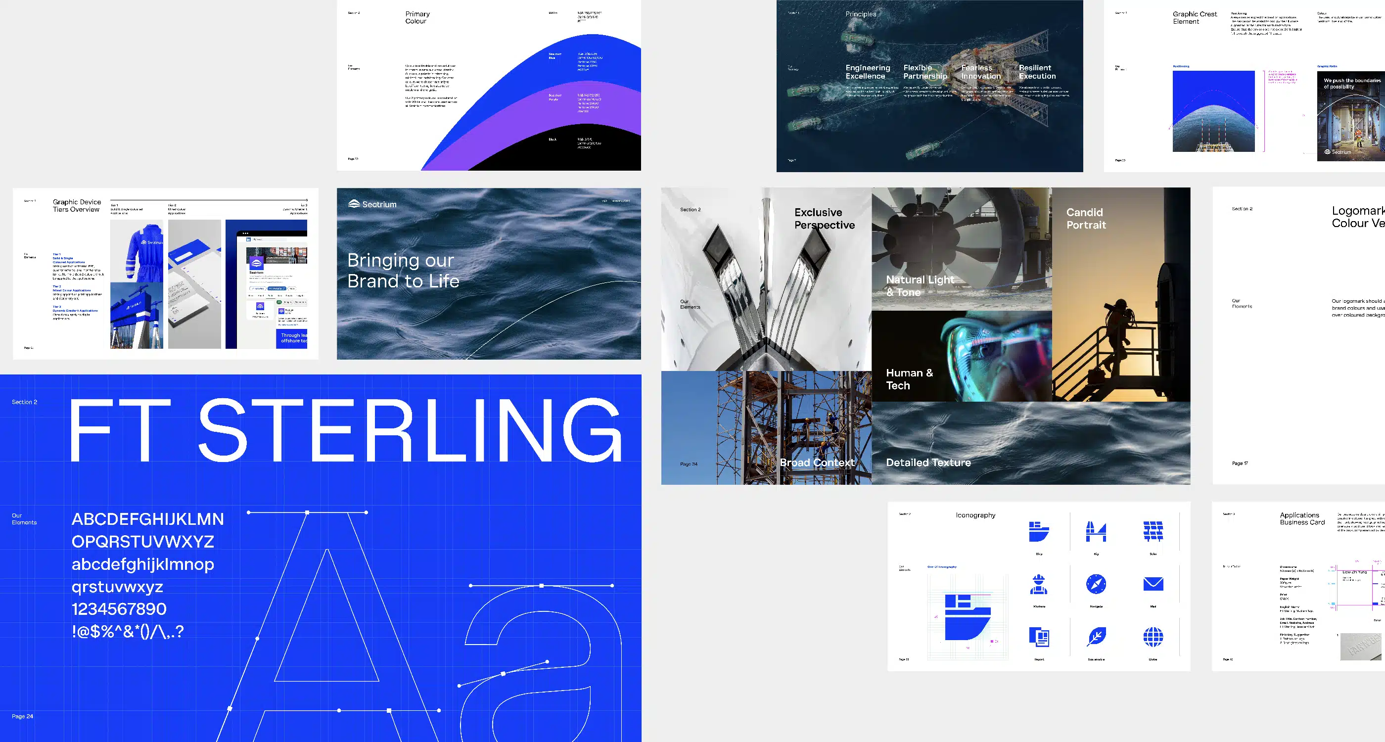 Inspired by forms in the industry, the new visual identity highlights new waves of innovation in the marine environment and elevates Seatrium to new heights. Inspired by the shape of Singapore and the bow of a ship, Seatrium showed their commitment to expand their footprint to reach new customers and markets. The three crescent shapes form their foundation; anchored in offshore marine, defining new horizons and ensuring clean skies for all, together helping to elevate above and below. The symbol reflects the key principles – flexible, fearless and resilient. Moreover, the new color palette is refreshing, minimal and outstanding. A brand book was also created to familiarize employees with their new brand strategy and visual look and feel to ensure they communicate in a cohesive way that is uniquely Seatrium.