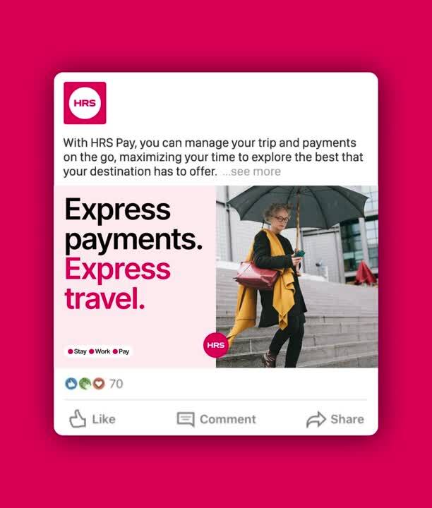 The new brand identity reflects the ease of use and bold positioning, highlighting HRS’s energy, simplicity and tech focus. The visual identity matches HRS’ new confidence, breaking through the crowded B2B travel industry. We also developed an updated Employee Value Proposition, to communicate the HRS story to employees and potential hires.