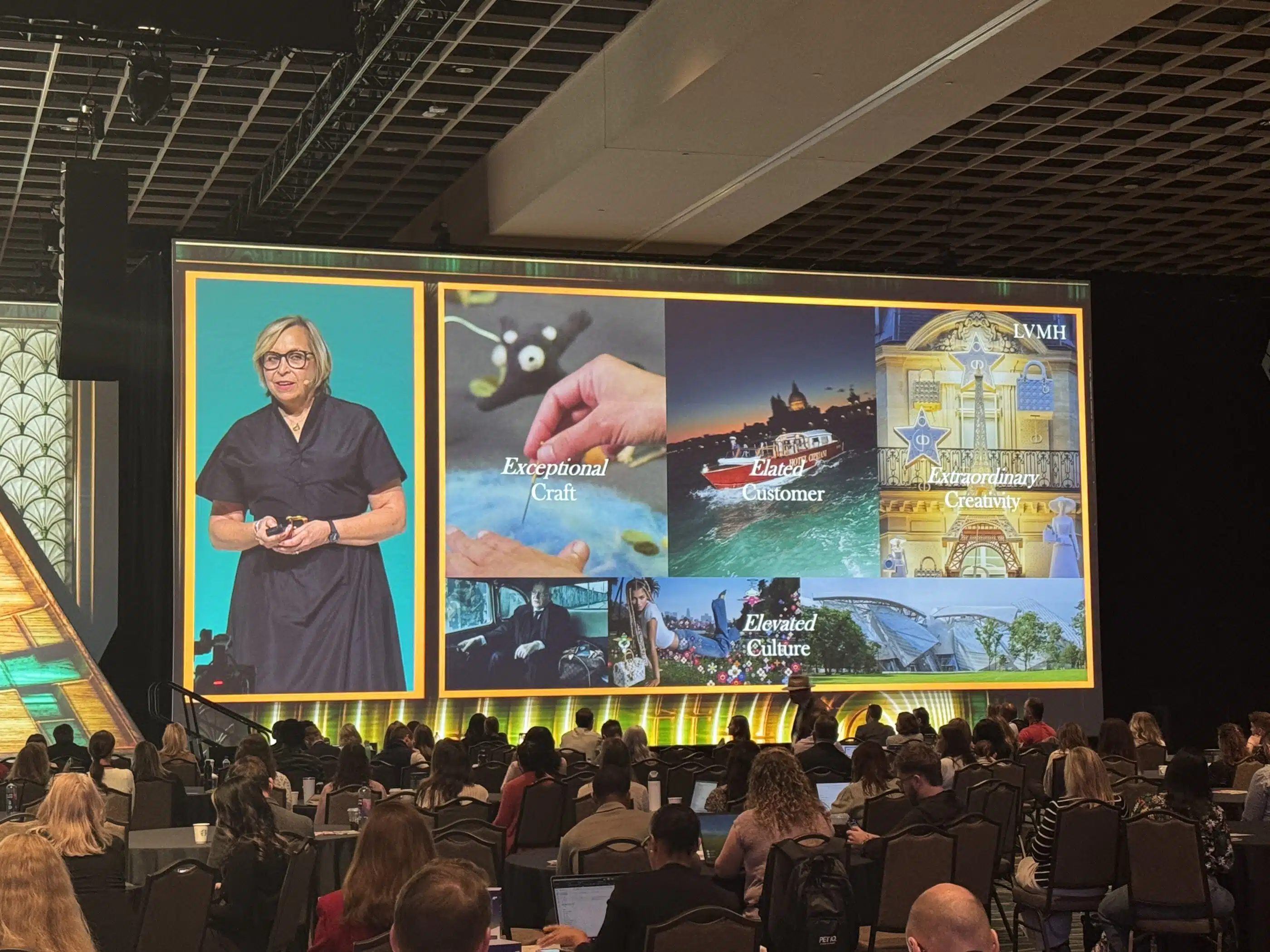 And then there was Mathilde Delhoume-Debreu, Global Brand Officer at LVMH, who took the crowd on a visual journey through The Art of Crafting Dreams. Through stories from LOEWE, Hennessy, Tiffany and Belvedere, she shared LVMH’s “4Cs of Luxury”: